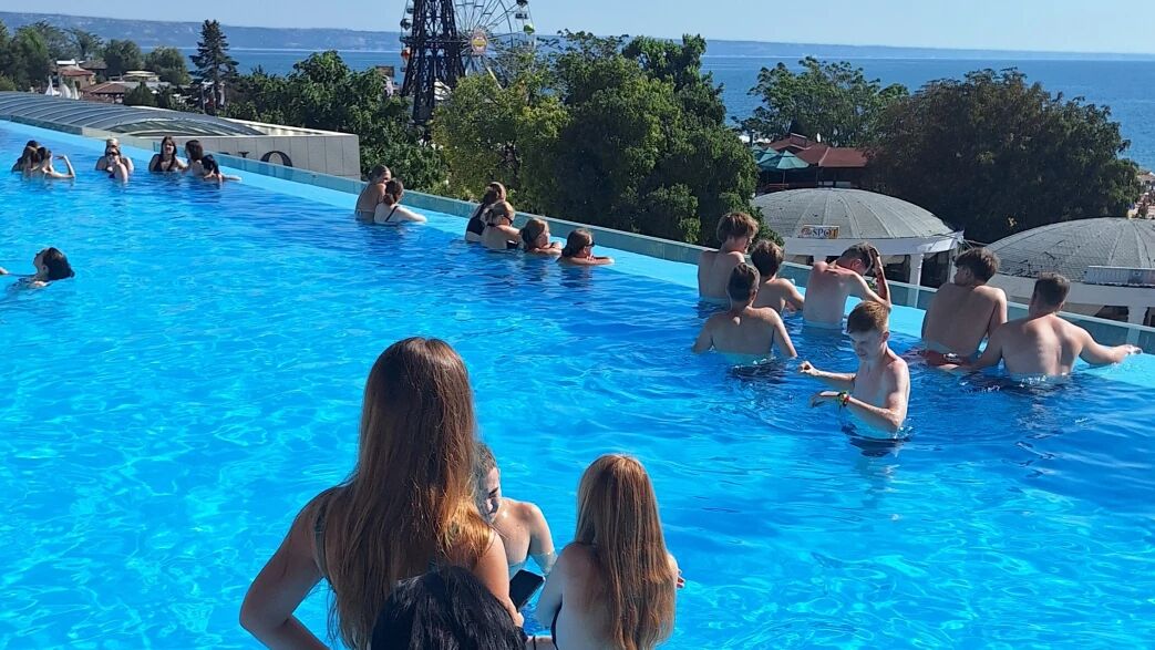 kąpiele w hotelowym basenie